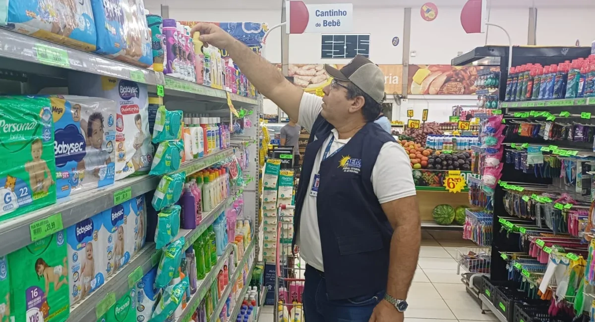 Equipe de Pré-Medidos da Agência de Metrologia fiscaliza produtos de higiene pessoal em estabelecimentos comerciais - Foto: Brenda Ramos/Governo do Tocantins