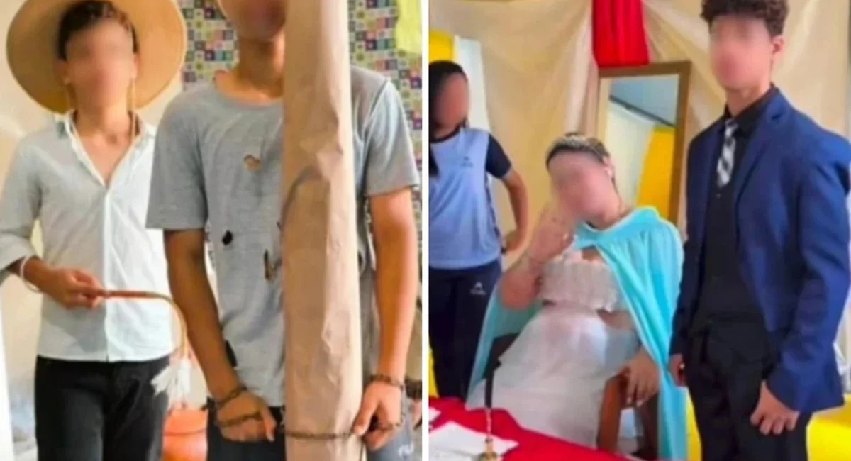 A publicação, que não está mais no perfil da escola nas redes sociais, mostra um menino negro com roupas rasgadas amarrado a um poste forrado com papel, simulando um tronco. Ao lado dele, um aluno branco está usando um chapéu e um chicote.