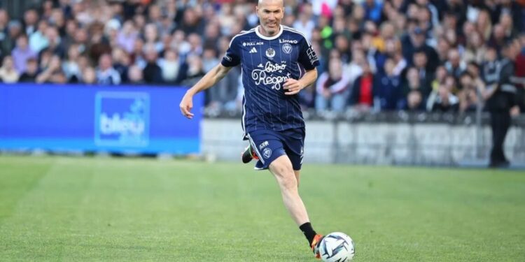 O craque francês participou de um jogo de lendas do Bordeaux, clube que defendeu entre 1992 e 1996 antes de encantar o mundo, contra o Variétés, um time formado em 1971 para amistosos festivos com celebridades e ex-jogadores.