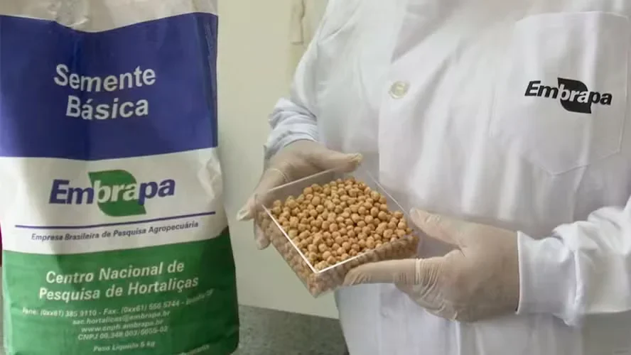 A variedade de batata-doce escolhida para a experiência foi a Beauregard, registrada no Brasil como instituição mantenedora, que destaca-se pela polpa alaranjada, característica indicativa de alta concentração de betacaroteno, e raízes alongadas e uniformes. Já as sementes de grão-de-bico eram da cultivar BRS Aleppo, de cor creme, formato angular e tamanho entre 8 e 9,5 milímetros.