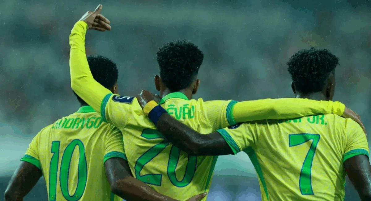 A Seleção Brasileira venceu a Coreia do Sul por 5 x 0 nesta sexta-feira (10/10), em amistoso preparatório para a Copa do Mundo de 2026, com dois de Estevão e Rodrygo, e um de Vini Jr. O jogo aconteceu no Estádio da Copa do Mundo, em Seul, capital do país adversário, e está no segundo tempo.