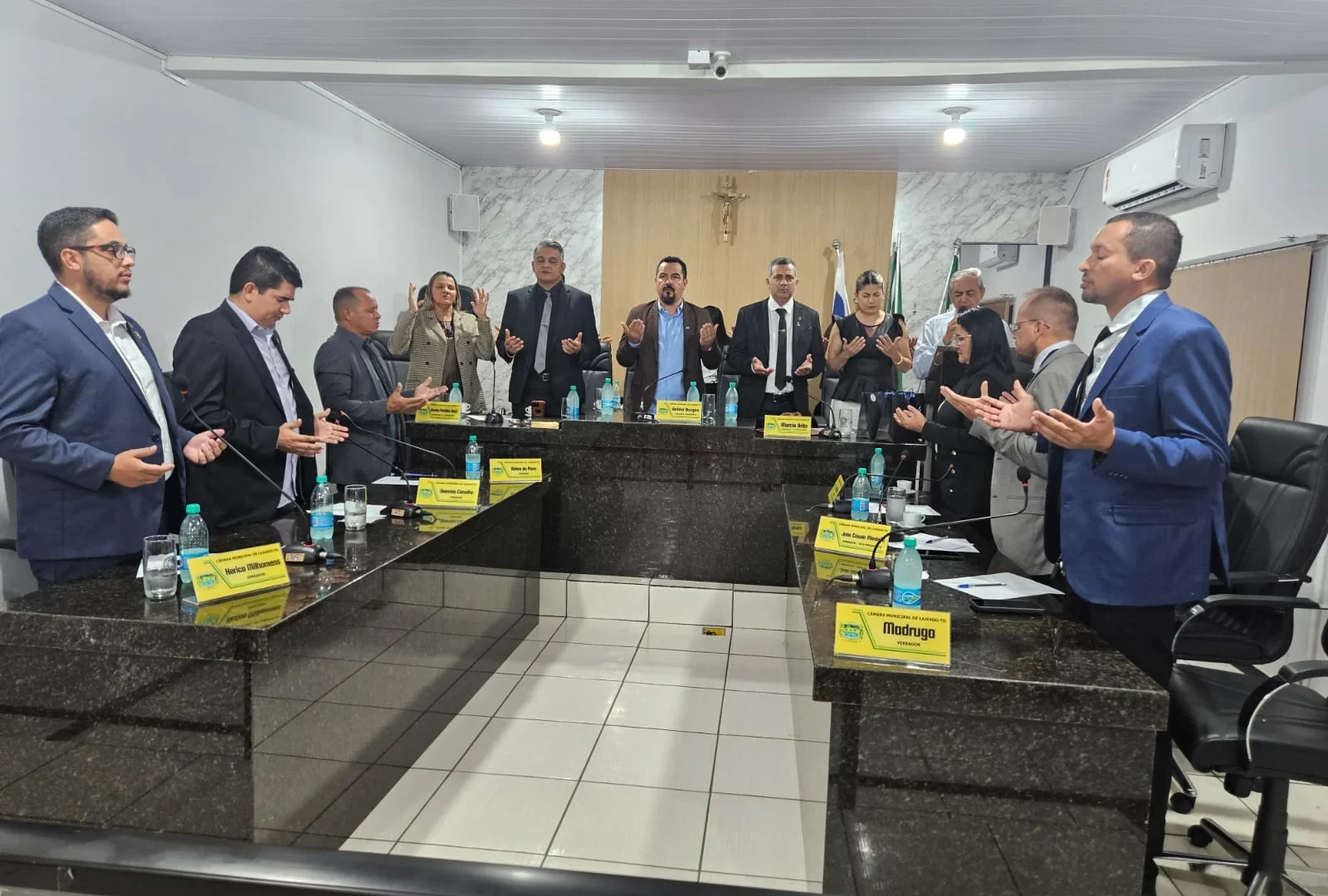 A solenidade foi iniciada com um momento de oração feito pelo Pastor Deodato Carlos Portilho da Igreja Assembleia de Deus CIADSETA que relatou sobre a importância de se colocar DEUS em primeiro lugar, até porque “todas as autoridades são constituídas por ele” disse.