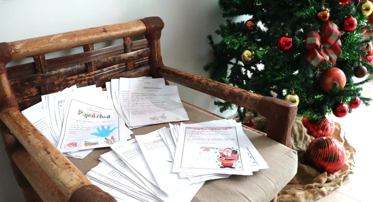 As cartinhas, escritas por meninos e meninas, revelam sonhos singelos como bonecas, carrinhos, bolas e outros pedidos que cabem na generosidade de quem deseja participar.