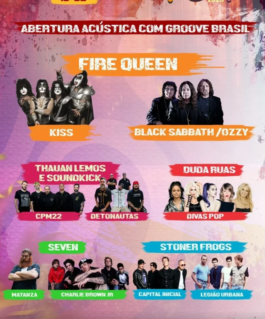 Nesta edição, o público poderá conferir covers de bandas e artistas que marcaram gerações, como Kiss, Black Sabbath, Ozzy Osbourne, CPM22, Legião Urbana e Charlie Brown Jr. , além de um set especial com versões rock de grandes divas do pop , criando uma mistura que promete agradar diferentes estilos e idades.