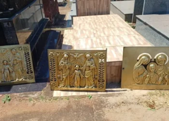 Placas de bronze de jazigos do cemitério municipal de Maringá (PR) foram encontradas por funcionários dentro de um túmulo desocupado,...