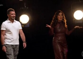 O ator Antonio Banderas, 63, fez uma participação especial no “Domingão com Huck”, na TV Globo, na final do quadro Dança...