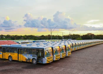 A frota com os 140 ônibus, mais 14 reservas, e 10 vans zero quilômetro do transporte coletivo começa a circular...