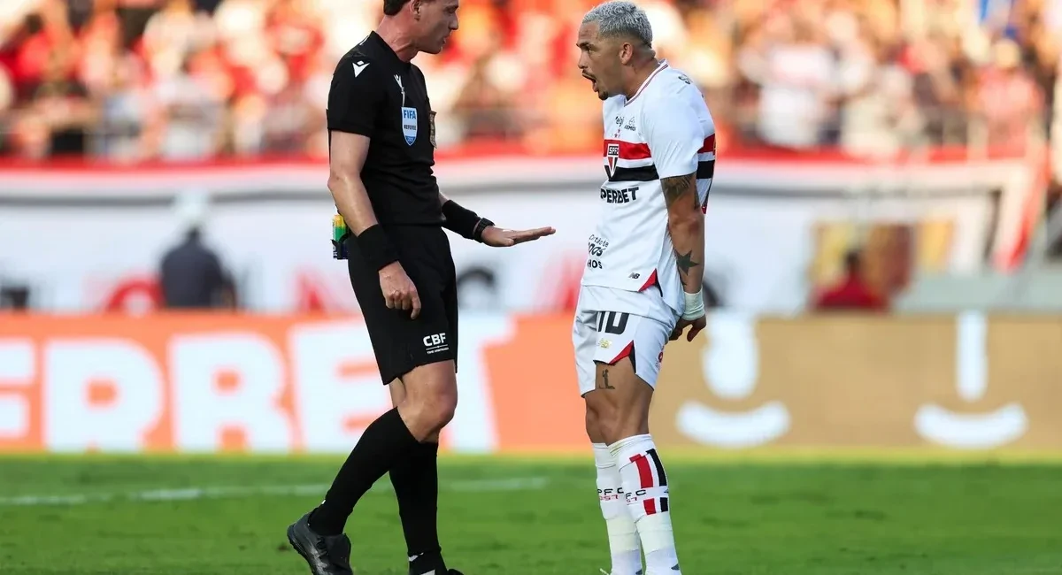 No clássico paulista, o Tricolor reclamou de um pênalti não marcado e um cartão vermelho não dado a Andreas Pereira, do Palmeiras, quando o jogo ainda estava 2 x 0 para o time treinado por Hernán Crespo.