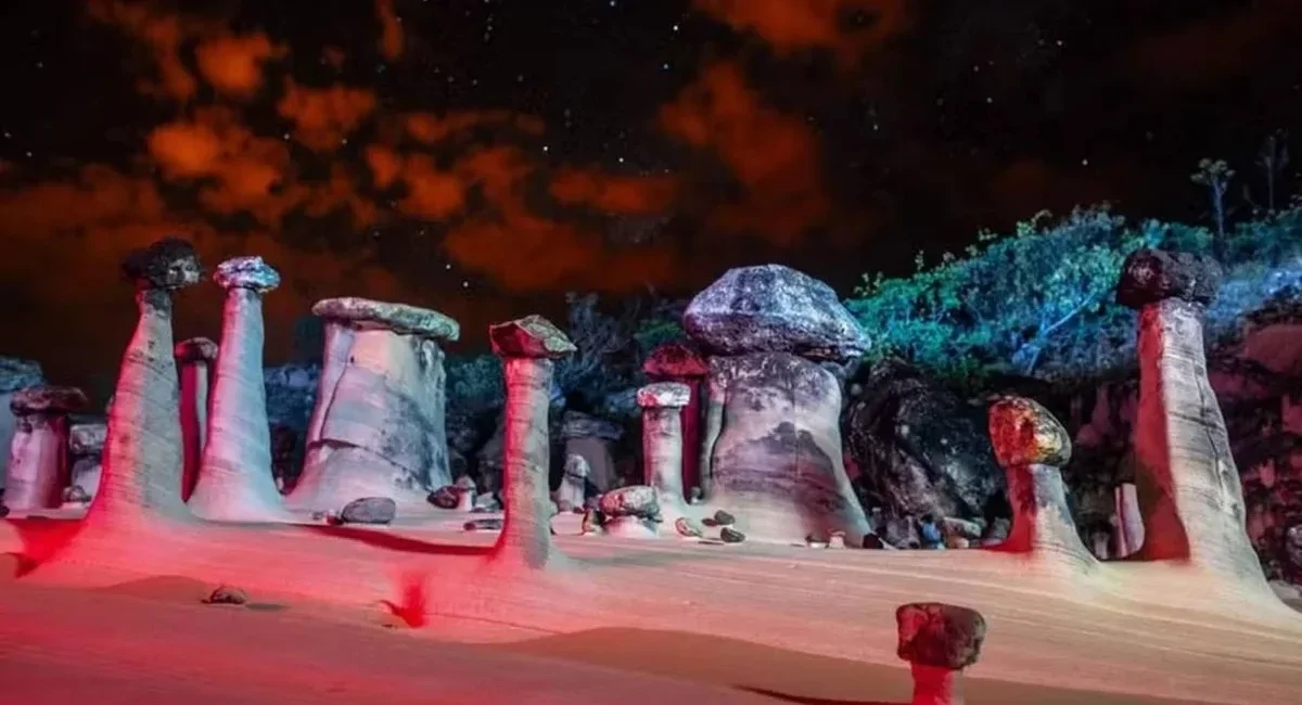 As primeiras fotos foram registradas em 2015 por Rodrigo Ferreira da Silva, filho de Domingos, e chegaram à geóloga Joana Paula Sanchez, da UFG, em 2022. “Embora pequenas chaminés existam em outros lugares, formações desse porte e espalhadas por uma área extensa são raras no mundo”, explica Joana.Play Video