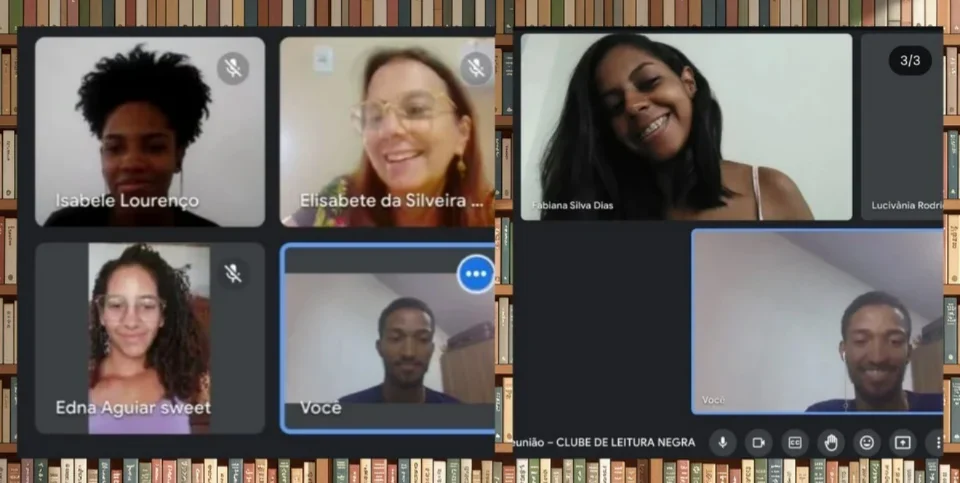 Montagem com prints da primeira reunão on-line do Clube de Leitura Negra (Imagens: Divulgação)
