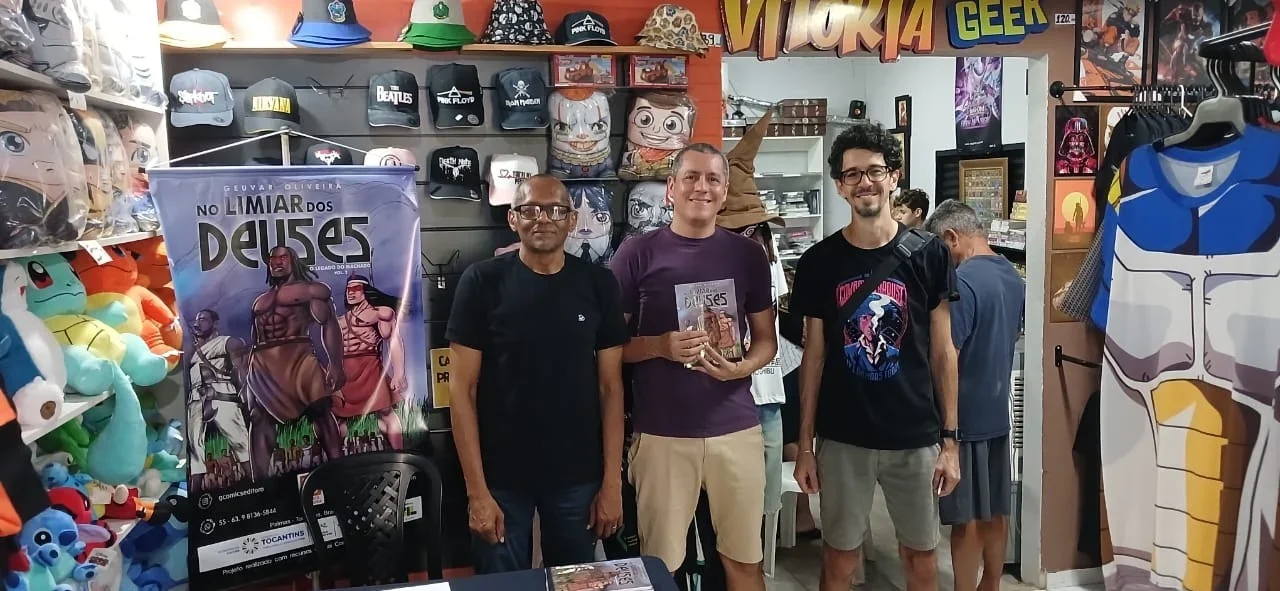 O universo mítico criado pelo artista Geuvar Oliveira avança para um território ainda mais denso e cinematográfico com o lançamento de No Limiar dos Deuses – Volume 2, segundo capítulo da série de quadrinhos autoral. A obra dá continuidade à narrativa fantástica desenvolvida pelo artista e foi viabilizada com patrocínio da Lei Complementar nº 195/2022 (Lei Paulo Gustavo). O livro pode ser adquirido na loja Vitória Geek, em Palmas, ou diretamente pelo WhatsApp do autor, no número (63) 8136-5844.