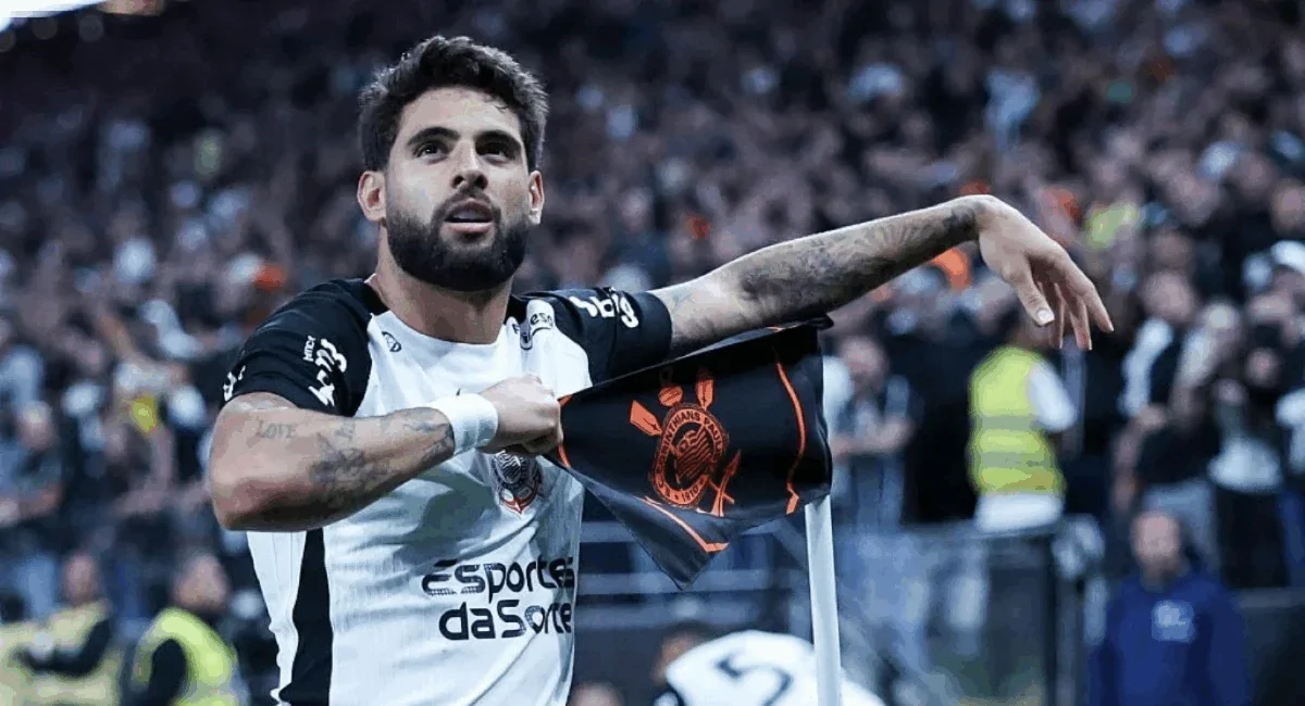 Quatro minutos depois, Vitinho finalizou de fora da área, a bola acertou a trave e sobrou nos pés de Yuri Alberto. O camisa nove dominou e fez o terceiro gol do Timão.