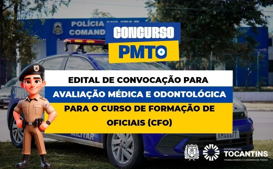A Polícia Militar do Estado do Tocantins (PMTO) divulga nesta terça-feira, 24, o edital de convocação para a Avaliação Médica e Odontológica dos candidatos aprovados no concurso público para o cargo de Cadete I do Quadro de Praças Especiais- QPES. A etapa é obrigatória e de caráter eliminatório, garantindo que os futuros policiais estejam aptos para atuar na segurança pública do estado.