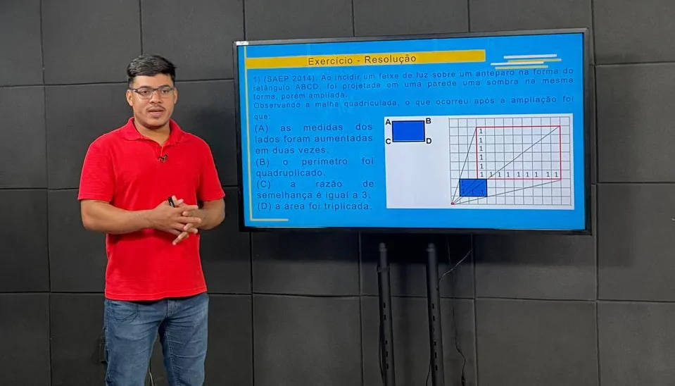 Na manhã desta quinta-feira, 2, o professor Lucas Semani ministrou uma aula de Matemática destinadas aos estudantes do 9º ano do ensino fundamental, que estão se preparando para as provas do Saeb.