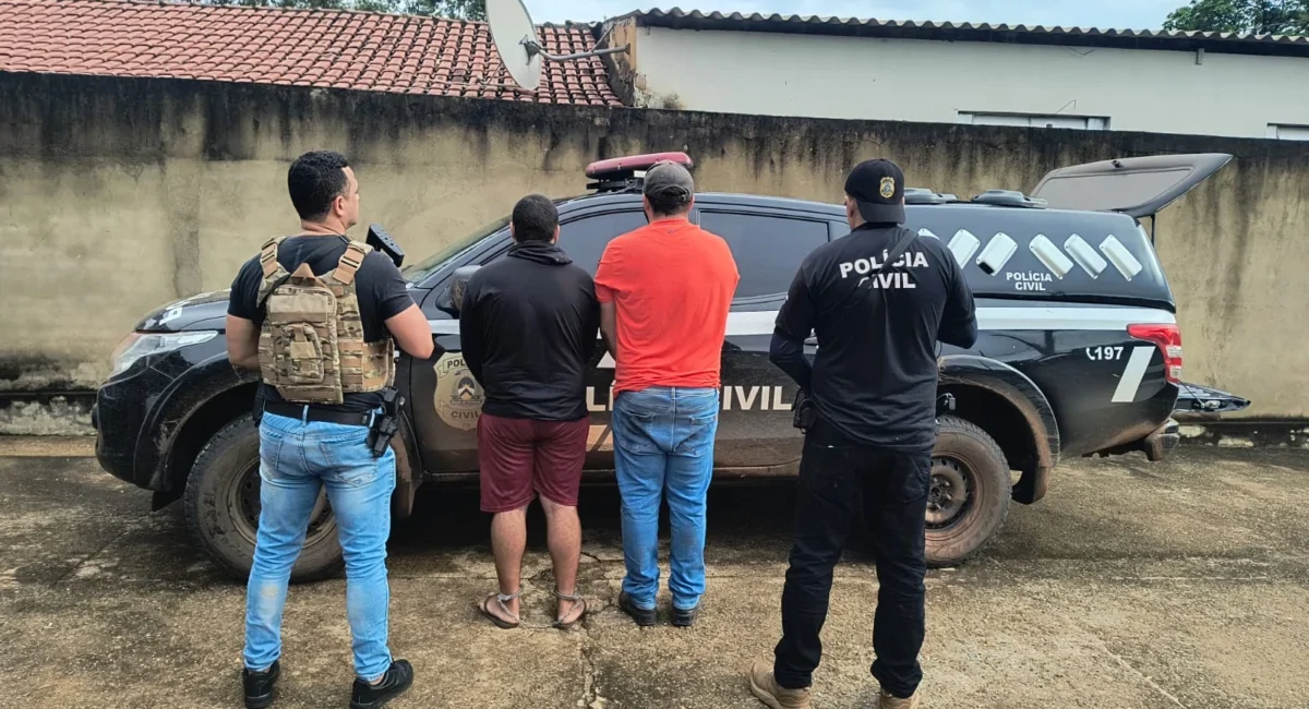 Durante o cumprimento do mandado foram localizadas duas armas de fogo e diversas munições. Na sede da propriedade, de posse de F.C.M., 34 anos, foram apreendidas uma espingarda aparentemente calibre .12, carregada, e sete cartuchos do mesmo calibre. Já na residência do caseiro, identificado pelas iniciais E.A.B.F., 21 anos, foi encontrada uma espingarda aparentemente calibre .44, também municiada, além de nove munições e cápsulas.