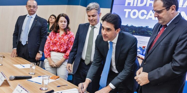 Nesta terça-feira, 30, o Governo do Tocantins, representado pelo secretário Extraordinário de Representação em Brasília (Serb), Carlos Manzini Júnior, participou da assinatura do acordo de Cooperação Técnica para os Estudos de Concessão das Hidrovias dos Rios Tocantins e Tapajós, em Brasília, com o ministro de Portos e Aeroportos, Silvio Costa Filho e outras autoridades. A implantação da hidrovia no Tocantins, com a integração adequada aos modais rodoviário e ferroviário, permitirá ao Estado assumir uma posição de destaque no cenário nacional de transportes.