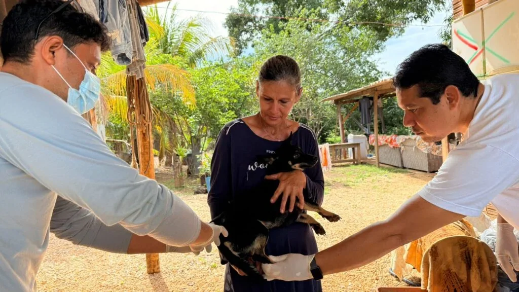 Em Palmas, cães e gatos da zona rural são vacinados contra a raiva em casa