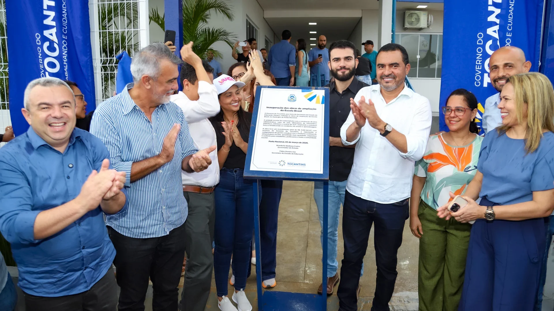 O governador do Tocantins, Wanderlei Barbosa, acompanhado do secretário de Estado da Educação, Fábio Vaz, entregou nesta quinta-feira, 5, as obras de reforma e ampliação da Escola Estadual Brasil, no município de Porto Nacional. Na ocasião, o chefe do Executivo também assinou as Ordens de Serviço para a reforma do Centro de Ensino Médio (CEM) Félix Camoa e do Centro de Ensino Médio (CEM) Professor Florêncio Aires, além de anunciar a construção de uma Escola de Tempo Integral em Porto Nacional.