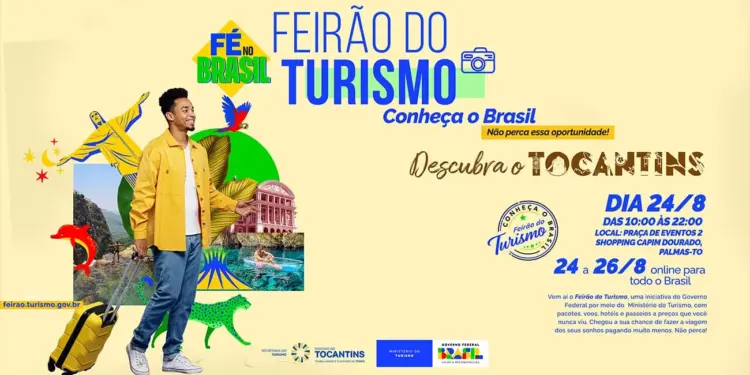 No próximo dia 24, será realizada a 1ª edição do Feirão do Turismo Conheça o Brasil, com atividades simultâneas por todo o País. No Tocantins, a iniciativa do Ministério do Turismo conta com a parceria do Governo do Estado, por meio da Secretaria do Turismo (Setur).