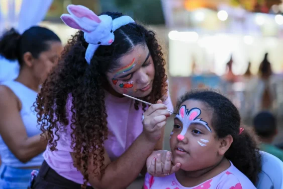 Entre os muitos rostos pintados e sorrisos estampados, a pequena Eloísa Mendes, de 8 anos, não escondia a felicidade após escolher a pintura facial com o tema do coelhinho da Páscoa. “Eu gostei muito”, resumiu, com o rosto ainda colorido e o brilho no olhar típico de quem viveu uma noite especial.
