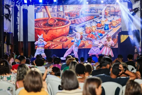 Na sequência, o Palhaço Batatinha trouxe ao palco o espetáculo ‘Mundo Encantado da Páscoa’, reforçando o clima lúdico da programação. O encerramento ficou por conta do cantor Matheus Mancini, que levou música ao público e completou a noite festiva.