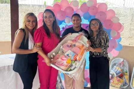 Um chá de bebê decorado com muito carinho pela equipe do Centro de Referência de Assistência Social (Cras) Karajá I, localizado no Jardim Aureny III, foi palco da entrega dos kits natalidade para gestantes em situação de vulnerabilidade social acompanhadas na unidade. A ação foi realizada nesta quinta-feira, 5, pela Prefeitura de Palmas, por meio da Secretaria Municipal de Políticas Sociais e Igualdade Racial (Sempsir).