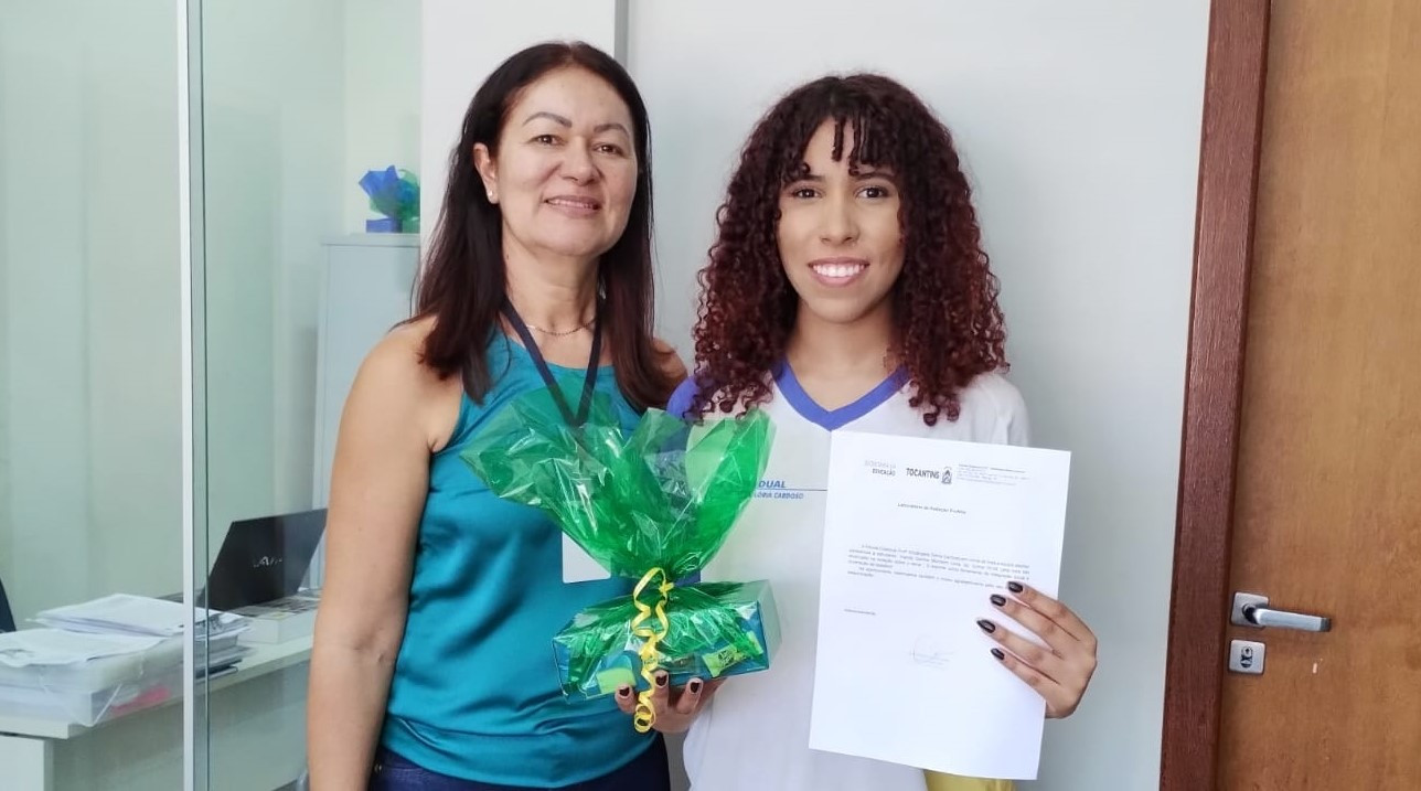 Estudante Yara Baracho recebe premiação por destaque na redação – Divulgação/Seduc/Governo do Tocantins file_download
