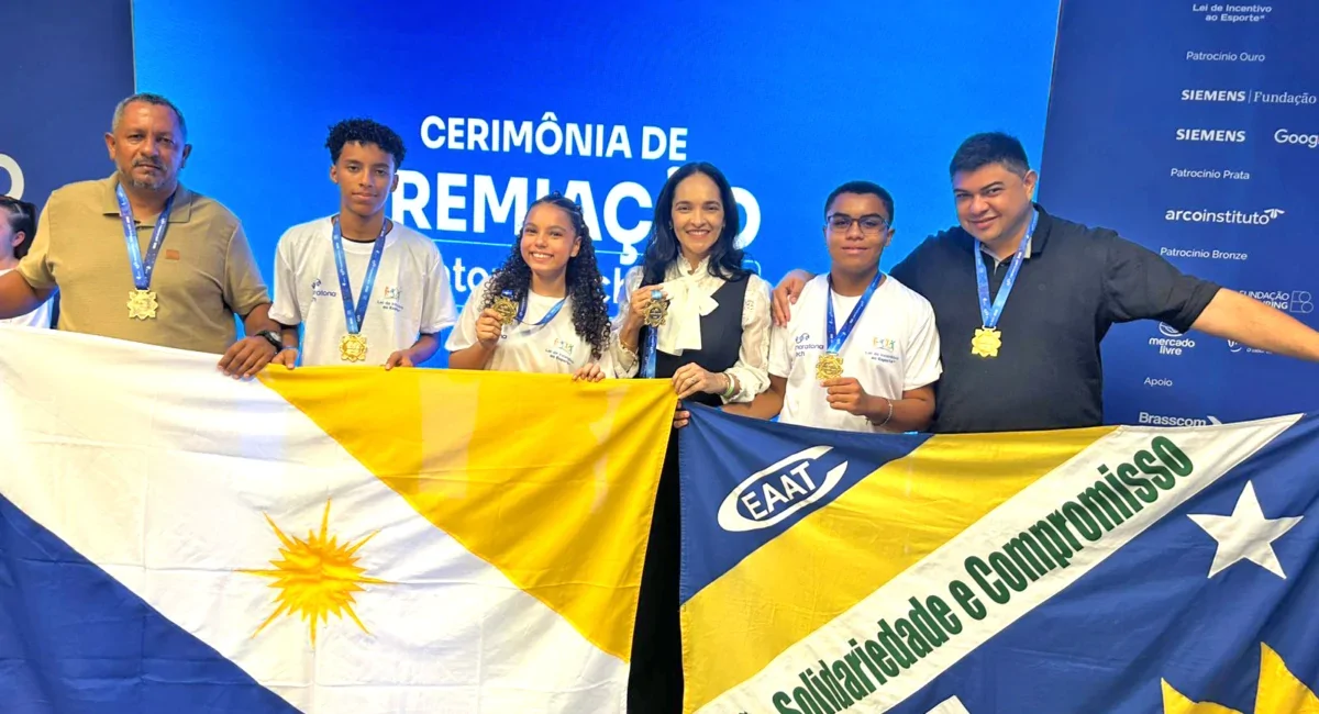 A educação do Tocantins recebe mais uma conquista, desta vez, são três estudantes e três professores que foram premiados com medalhas de ouro, na Maratona Tech 2025, considerado o maior evento de competição tecnológica do país, que reúne alunos de escolas públicas e privadas. O resultado evidencia que as ações realizadas pelo Governo do Tocantins, por meio da Secretaria de Estado da Educação (Seduc), estão dando certo, como o Programa de Fortalecimento da Educação (PROFE), responsável por ações de valorização da escola e dos educadores.