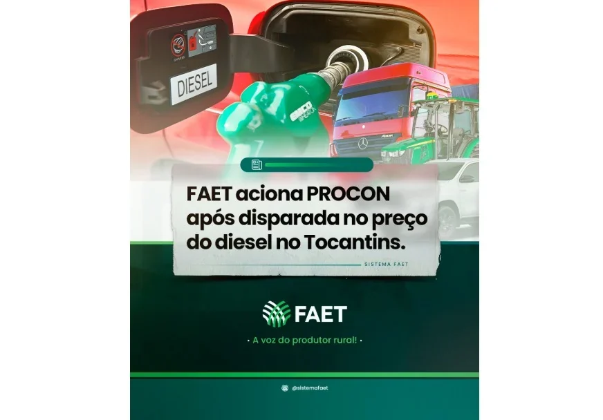 A Federação da Agricultura e Pecuária do Estado do Tocantins (FAET) protocolou ofício junto ao PROCON/TO solicitando monitoramento e fiscalização da evolução dos preços do óleo diesel no estado. A iniciativa ocorre após levantamento técnico identificar variações expressivas no valor do combustível em diferentes municípios tocantinenses.