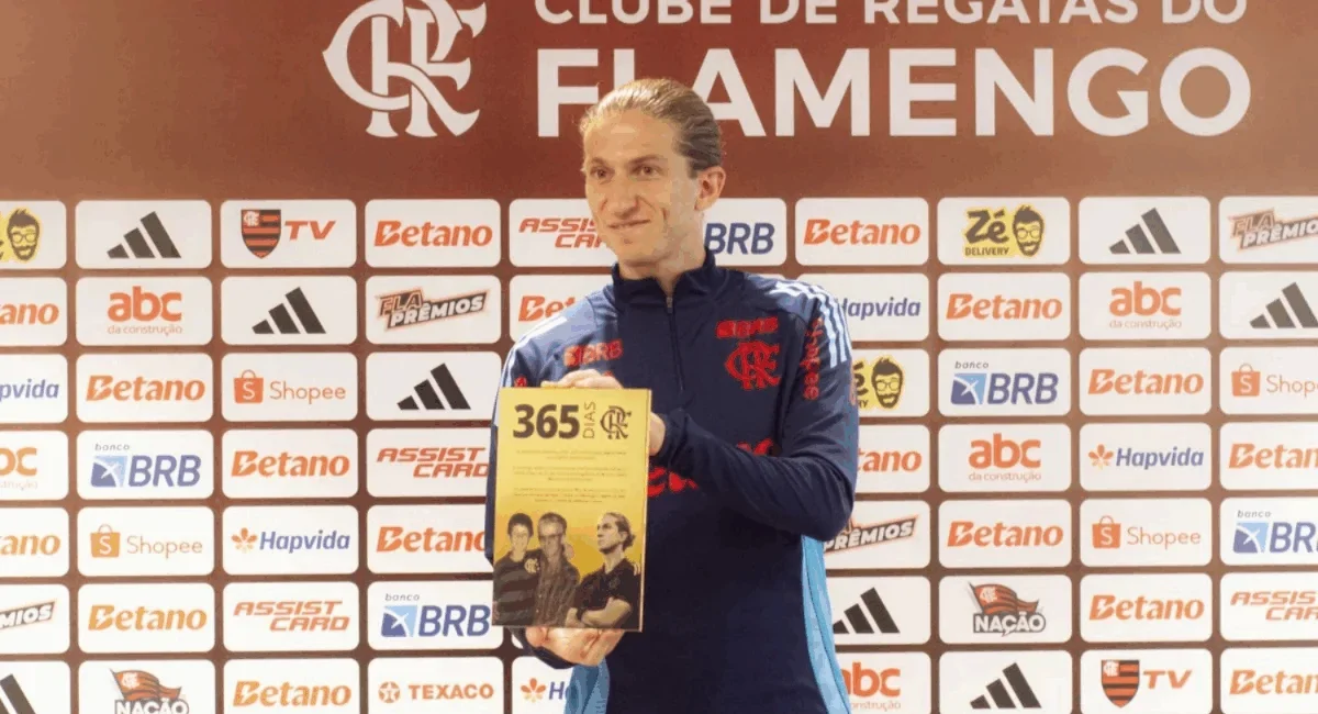 O técnico Filipe Luís completa, nesta terça-feira (30/9), um ano à frente do elenco profissional do Flamengo. O treinador e ídolo do Rubro-Negro e recebeu uma homenagem do clube pela marca alcançada.