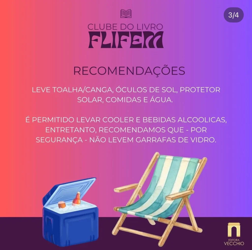 Gratuito e aberto ao público, o evento convida os participantes a levarem cadeira ou canga, além de cooler, para aproveitar o fim de tarde à beira do lago. A iniciativa reforça a proposta da Flifem de ocupar espaços públicos com arte, literatura e protagonismo feminino.