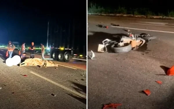 O acidente ocorreu no sábado (11/4). Segundo a Polícia Rodoviária Federal (PRF), Caio trafegava no sentido Cezarina–Guapó quando, por volta das 23h, atingiu o boi. A motocicleta ficou destruída ao lado do jovem e do animal sobre a pista.