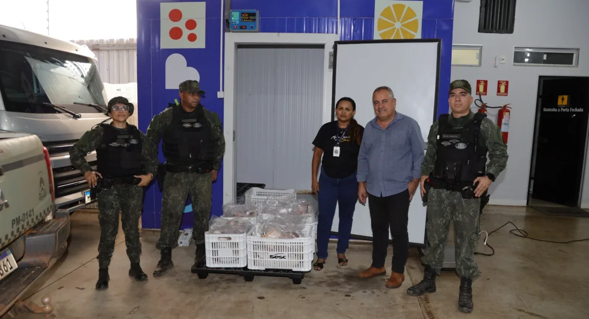O Governo do Tocantins, por meio da Secretaria de Assuntos Institucionais, realizou neste sábado, 1º de novembro, a doação de peixes apreendidos pelo Batalhão de Polícia Militar Ambiental (BPMA) ao programa Sesc Mesa Brasil, em Palmas. Cerca de 350 kg de pescado, do tipo pirarucu, foram apreendidos durante a Operação Protetor dos Biomas, na zona rural do município de Lagoa da Confusão, após flagrante de pesca proibida durante o período de defeso (piracema) e porte ilegal de arma de fogo de uso permitido.