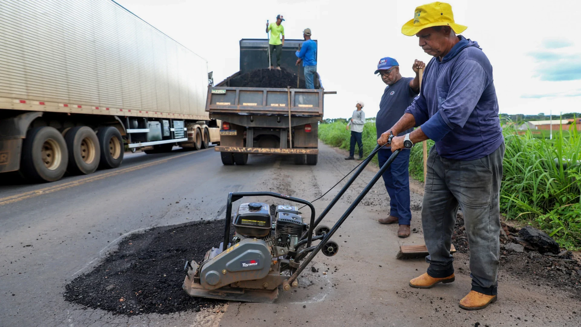 Na rodovia TO-040, no trecho entre Porto Alegre do Tocantins e Dianópolis, equipes da Ageto realizam operação tapa-buracos para recuperar danos provocados pelas chuvas. No mesmo eixo, os serviços de roçagem contribuem para a melhoria da visibilidade e segurança dos usuários.