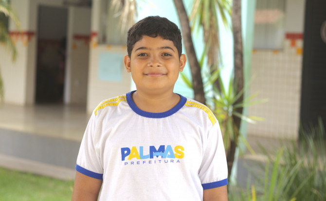 O estudante João Victhor Guimarães Barros, de 10 anos, comenta que estava ansioso para a prova – Seduc/Governo do Tocantins