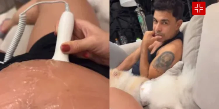 Graciele Lacerda mostra Zezé Di Camargo ouvindo coração da 1ª filha do casal