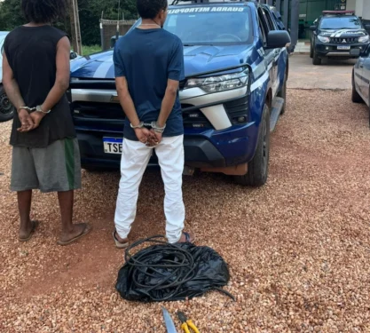A equipe foi acionada via Sistema Integrado de Operações (Siop) para averiguar a denúncia. Com as características dos indivíduos e a direção da fuga repassadas, a guarnição realizou patrulhamento ostensivo e localizou a dupla em um beco na quadra 105 Norte. Durante a abordagem, os homens confessaram a prática do crime. Com eles, os guardas encontraram os fios de alta tensão, além de uma faca e um alicate, ferramentas possivelmente utilizadas para a retirada do material.