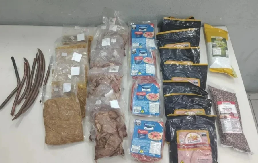 Entre os itens apreendidos com o suspeito estavam ingredientes como: pepperoni, lombo de porco, creme de chocolate e de pistache.