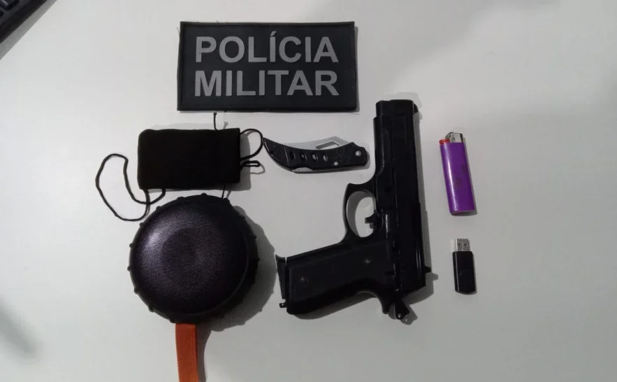 Com o homem, foram localizados um simulacro de pistola, um canivete, uma caixa de som, um pen drive e um cabo USB. Ao verificarem os registros recentes, os policiais constataram que as características do abordado coincidiam com as de um autor de uma tentativa de furto qualificado ocorrida na noite anterior, por volta das 20h30, no Setor Umuarama. Naquela ocasião, o criminoso teria invadido uma residência e, ao ser surpreendido pelo proprietário, desferiu um golpe de canivete contra a vítima antes de fugir.