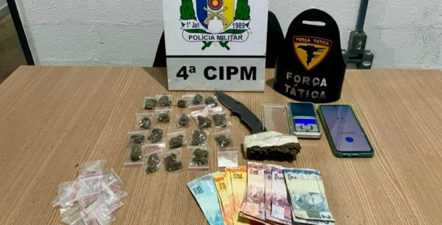 A abordagem ocorreu por volta das 19h, no cruzamento da rodovia TO-374 com a Avenida Duque de Caxias, após o suspeito tentar fugir em um veículo ao visualizar a viatura policial. Durante a busca pessoal e veicular, os militares localizaram porções de substâncias análogas à cocaína e à maconha, além de uma balança de precisão utilizada para a pesagem do entorpecente, um canivete, embalagens próprias para o fracionamento de drogas e a quantia de R$ 413,00 em dinheiro, característica da comercialização ilícita.