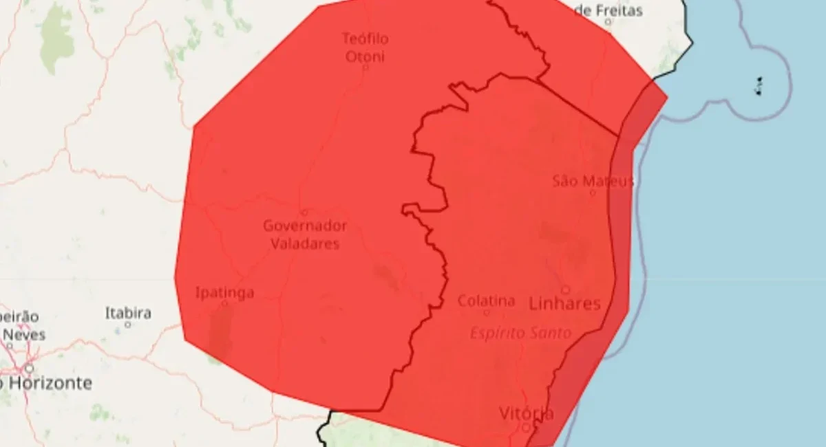 O alerta do Inmet atinge as regiões do Vale do Rio Doce, central espírito-santense, noroeste espírito-santense, Jequitinhonha, litoral norte espírito-santense, Vale do Mucuri, sul baiano, zona da mata, região metropolitana de Belo Horizonte e sul espírito-santense. Clique aqui para conferir os 191 municípios atingidos.