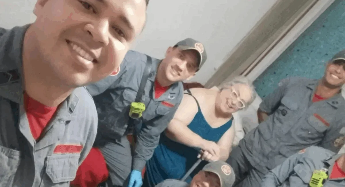 Na publicação, ela mostrou o registro ao lado dos profissionais e na legenda do post, explicou que caiu em sua casa e precisou acionar a corporação.