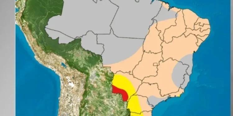 Na Região Centro-Oeste, o processo de formação do ciclone extratropical e da frente fria deve promover o desenvolvimento de instabilidades e a ocorrência de fortes rajadas de vento em parte de Mato Grosso do Sul.