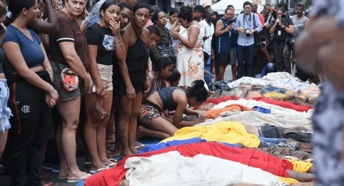 Na manhã desta quarta-feira (29/10), mais 70 corpos foram achados depois da ação policial que atingiu os complexos da Penha e do Alemão, na zona norte do Rio. Moradores da região passaram a enfileirar os cadáveres achados na área de mata em uma praça.