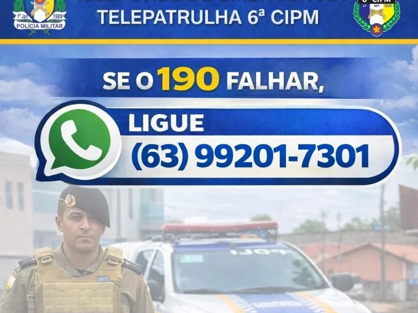 A 6ª CIPM com sede em Miracema do Tocantins está informando às populações dos municípios de Lajeado, Tocantínia, Miranorte, Rio dos Bois e Miracema que além do 190, o número (63) 99201-73-01 é disponibilizado para emergências.