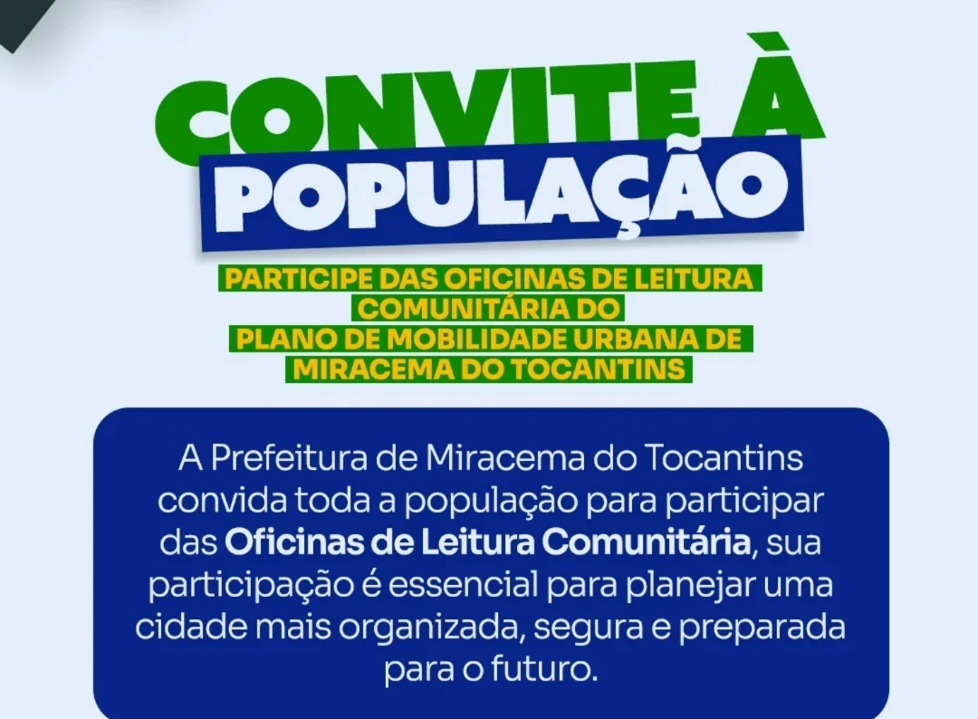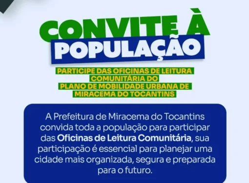 A Prefeitura de Miracema do Tocantins convida toda a comunidade a participar das Oficinas de Leitura para a construção do 1º Plano de Mobilidade Urbana do município.