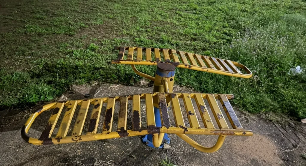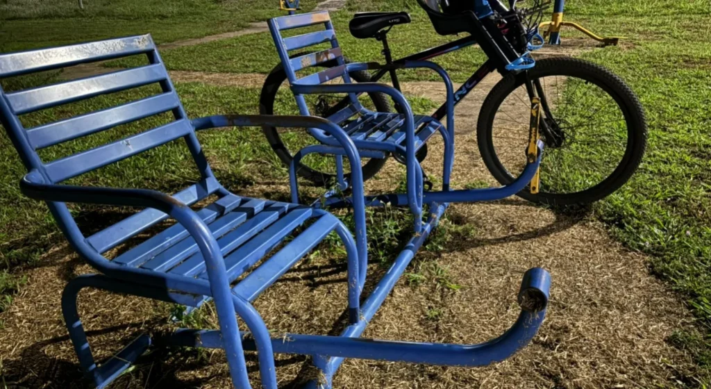 A outra questão é a situação dos aparelhos da academia ao ar livre que estão muito deteriorados em função das intempéries causadas pelo tempo; praticamente todos carecem de reparos, ou até substituição conforme mostram as fotos.