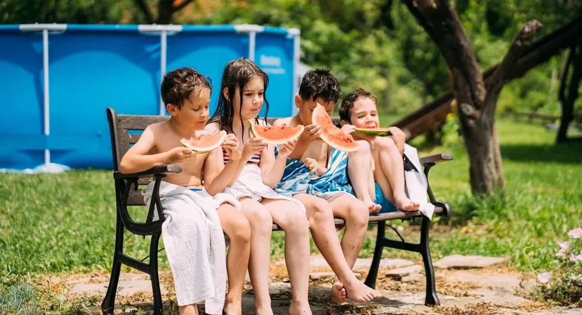 - Antes de entrar na piscina, dê preferência a alimentos leves e que não demandem muita energia do sistema digestivo, como frutas e vegetais.