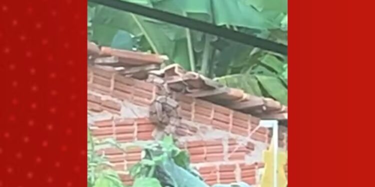 No vídeo é possível ver a cobra entrando pelo vão entre o telhado e as paredes da casa. Logo em seguida o morador dá uma pancada no telhado, arranca algumas telhas. A cobra cai para fora da casa.