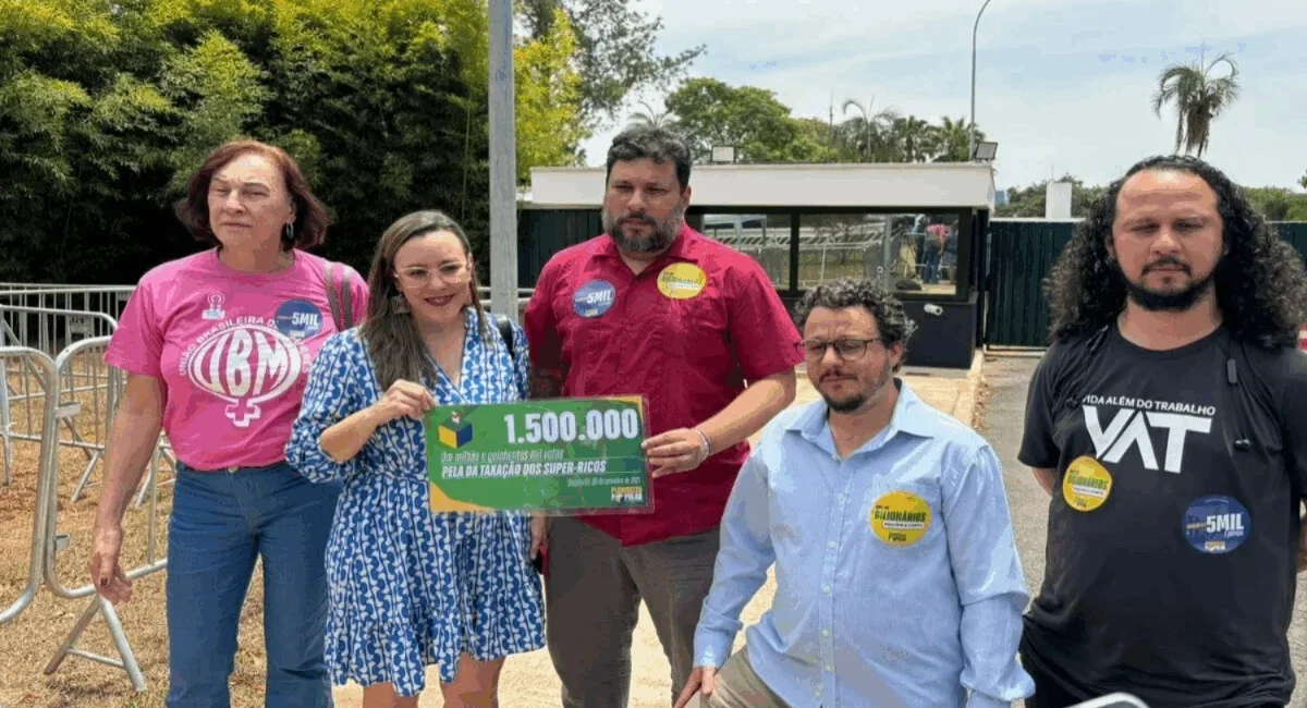 “Nós viemos apresentar para o Hugo Motta expressando essa a vontade da soberania popular que é pela taxação dos mais ricos e vamos apresentar também hoje a tarde para o presidente Lula, para que ele também consiga com suas políticas de governo avançar no sentido da justiça tributária”, declarou o coordenador nacional do Movimento dos Trabalhadores Sem-Teto (MTST), Rud Rafael.